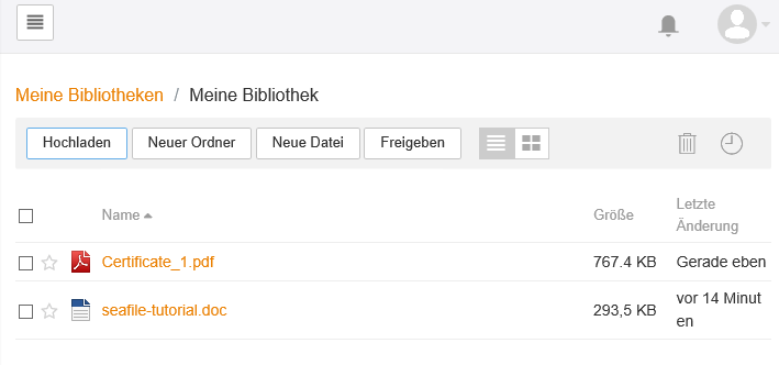Wenn Sie nun versuchen, aus Ihrem LAN heraus etwas auf dem Seafile Server hochzuladen, sollte dies ohne Probleme funktionieren. Sie haben nun einen funktionierenden Seafile Server bzw. eine Seafile Cloud in Ihrem Netzwerk. Beachten Sie aber bitte, dass die Verbindung vom und zum Seafile Server nicht verschlüsselt ist. Sollten Sie also vorhaben, den